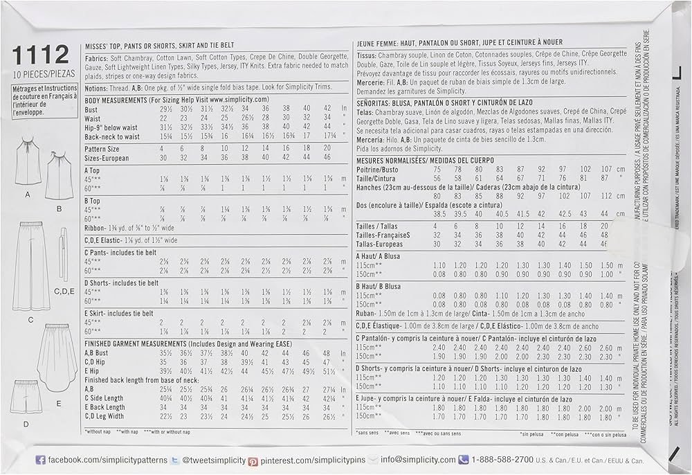 Amazon Com Simplicity 1112 Learn To Sew Top Pants And Skirt Sewing Pattern For Women Sizes 12 20 Arts Crafts Sewing